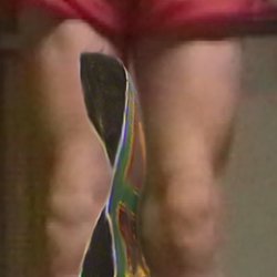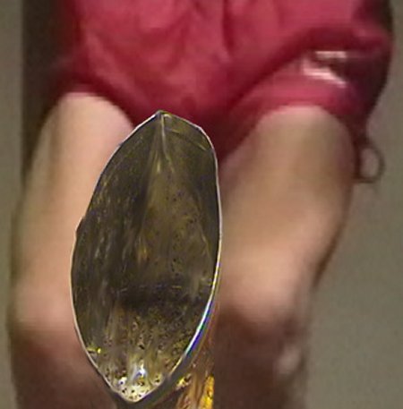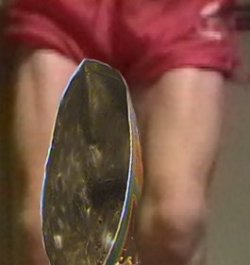 his legs. The object is crushed by a combination of pressure from his