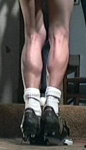 is evident in the size and definition of his calves.