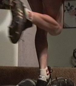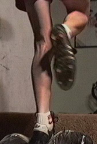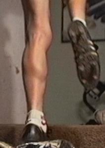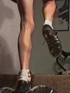 As Tim turned to run back he rose on the toes of his left foot and showed the great definition of his left calf as he let himself down.