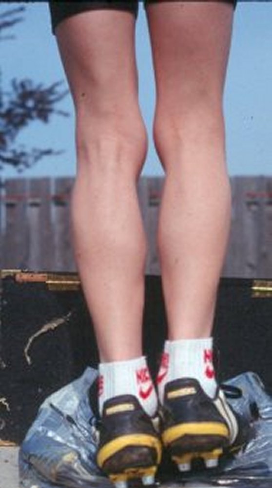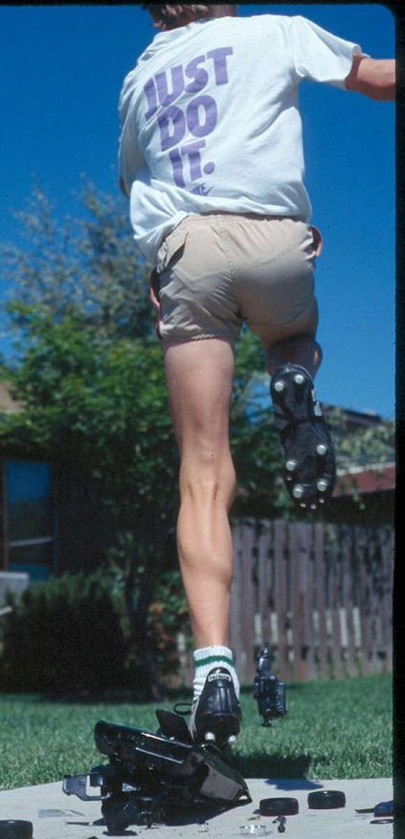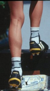He uses his jump box to cushion his feet. This trains his fast-twitch