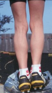 One of Tim's plyometric exercises is doing toe touches on a high box.