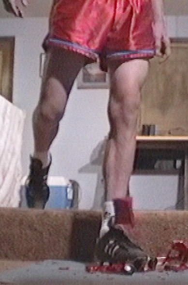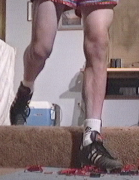 cleats on each one. He decided he wanted to try them out. He wasn't doing
