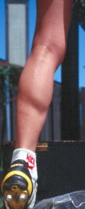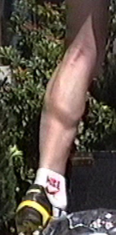 a still camera. Years of training have made Tim's calf rock hard and fantastically