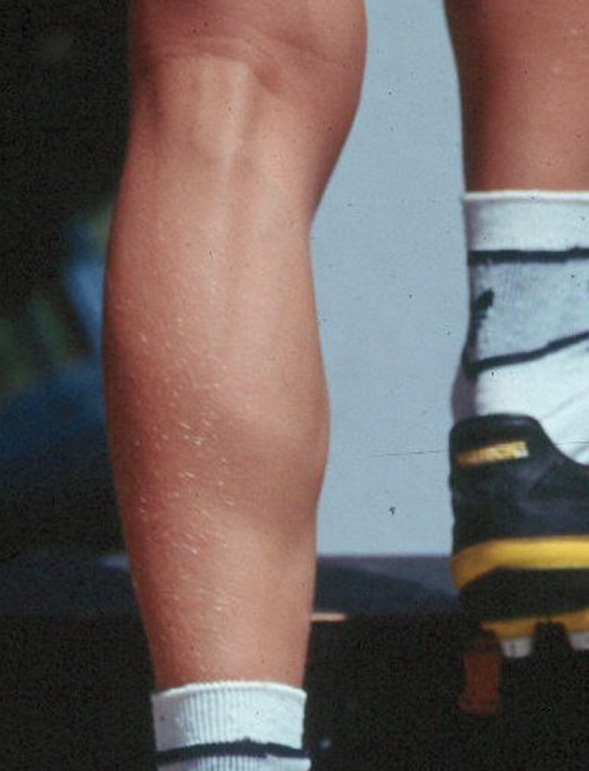shows the different levels of flexion in Tim's calves. The power of his