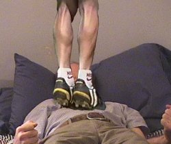 Tim stopped jogging and stepped up on the bed. He was still wearing