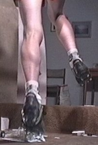 Tim increased the pressure on the can. His quads hardened into ridges.